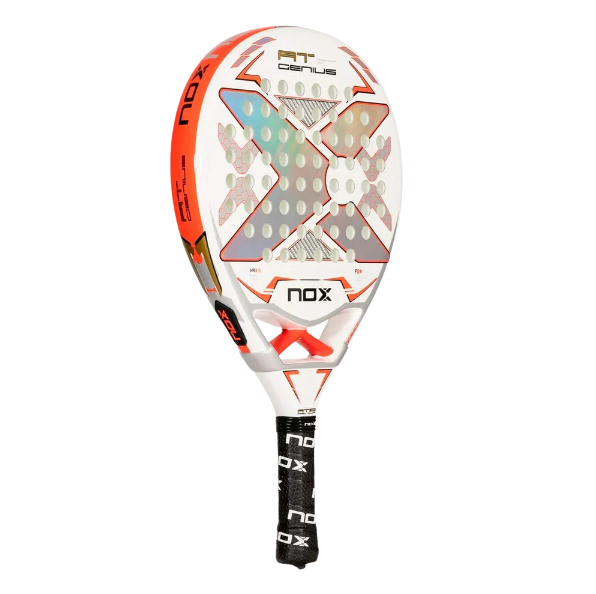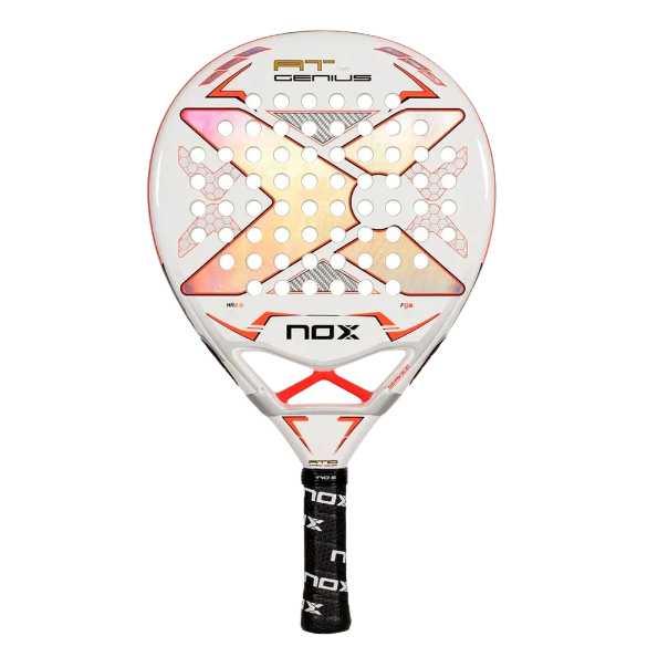 The 2024 NOX AT10 Pro Cup Coorp is a masterpiece born from two icons – the AT10 Genius and the ML10 Pro Cup. This racket merges the best of both worlds, delivering unmatched balance, maneuverability, and shot precision for intermediate to advanced players. Its HR3 core ensures maximum power on smashes, while the 3K Silver Fiber glass surface provides an excellent feel with every shot.
