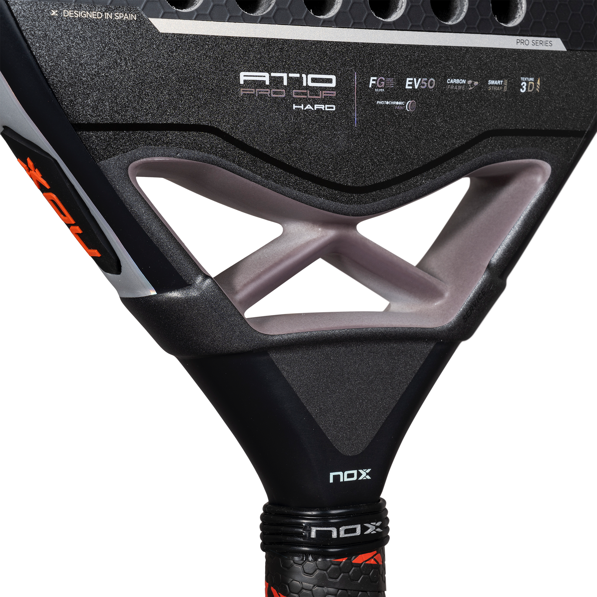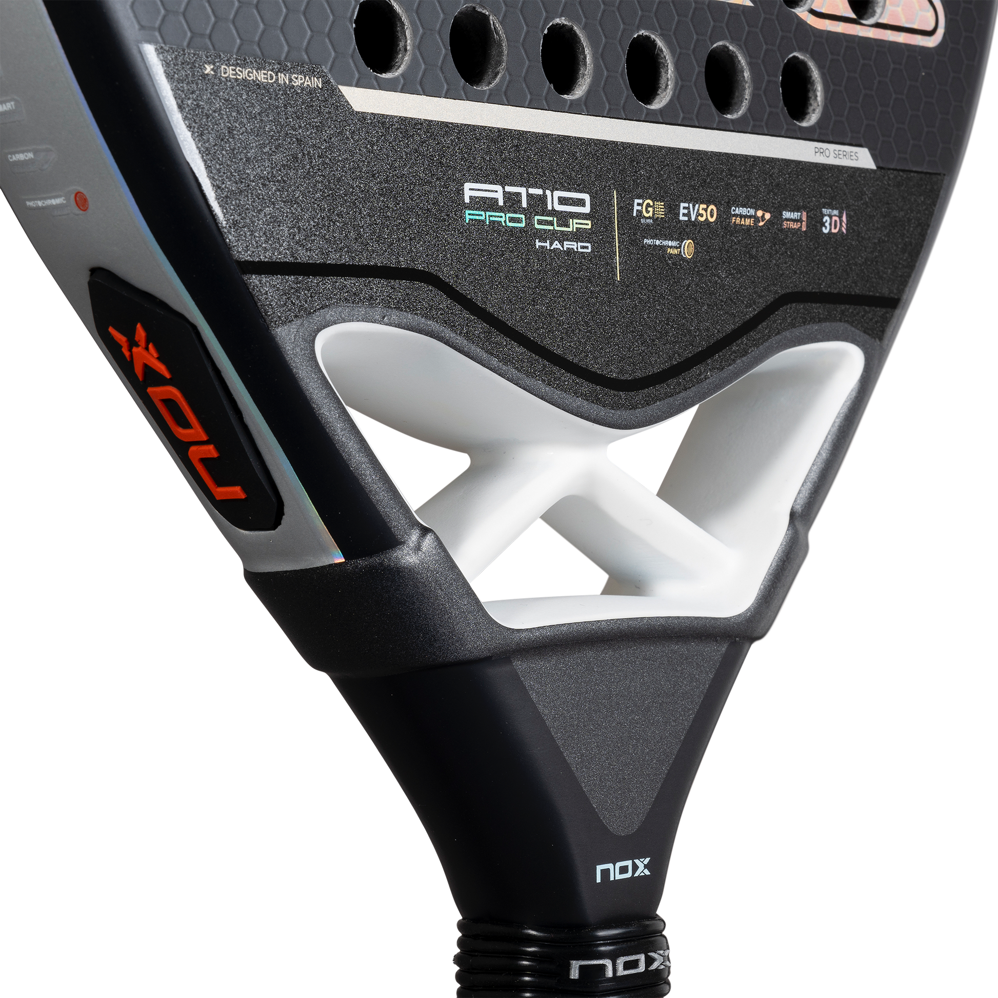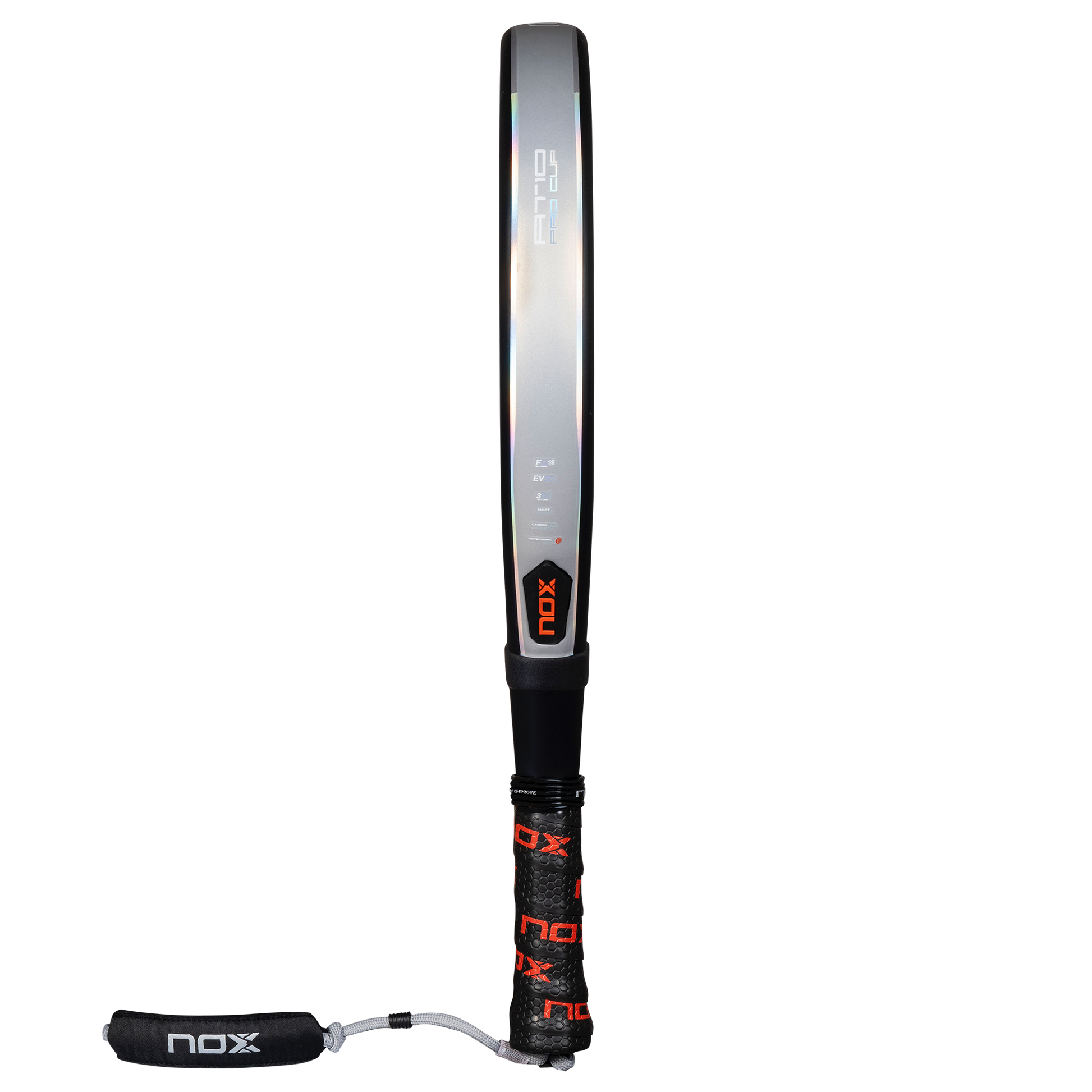 The NOX Pro Cup Hard 2025 is the firmest evolution of the iconic Pro Cup series — a modern take on the legendary Miguel Lamperti mold, rebuilt for extra power while maintaining its classic control-based DNA. With a round head shape and wider sweet spot, it delivers exceptional precision on placement shots, while the HR3 Hard EVA core generates a crisp, explosive response for attacking finishes. Reinforced with Carbon Frame durability, a Fiber Glass Silver hitting surface, and NOX’s latest vibration dampening, this racket is fully updated for the 2025 season while keeping the spirit of the Pro Cup alive.
