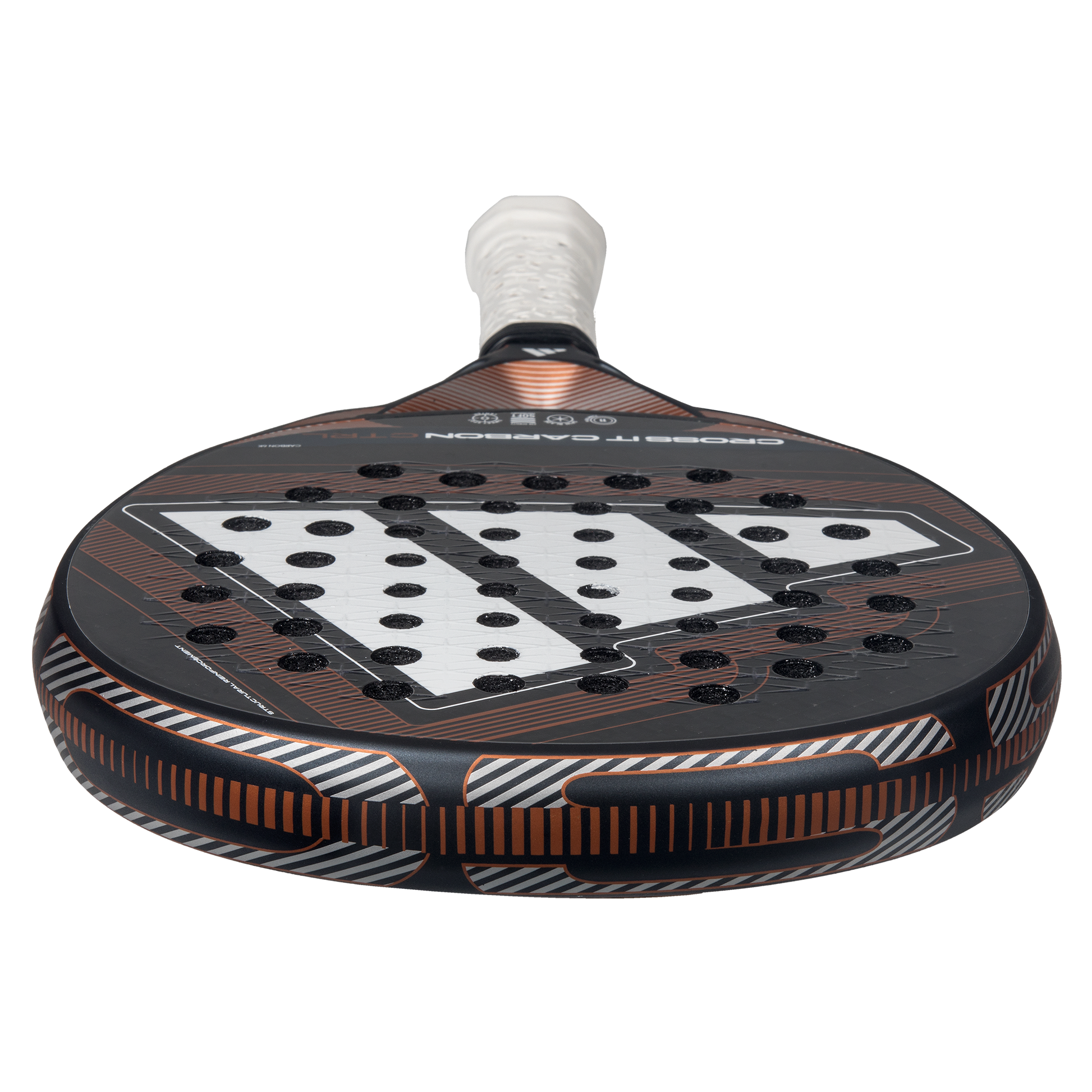 The Cross It Carbon CTRL 2026 takes the controlled round mold and pairs it with the stable, powerful Carbon 6K face material. Dynamic Air Flow lightens the swing, while Extra Power Grip boosts torque transfer. With Soft Performance EVA at its core and 11 Thirteen drilling reinforcing the impact zone, this racket is a precision tool for constructing points with confidence.