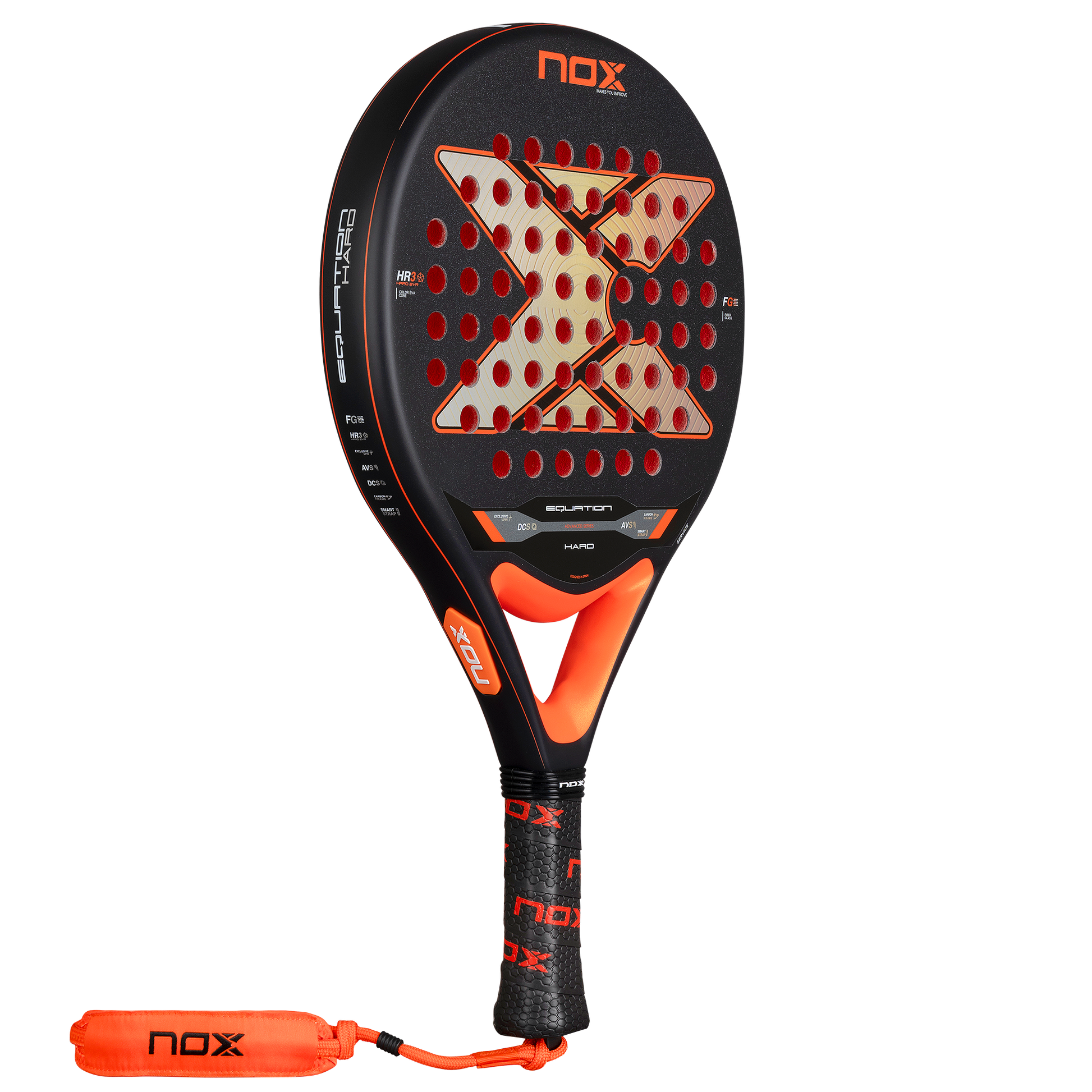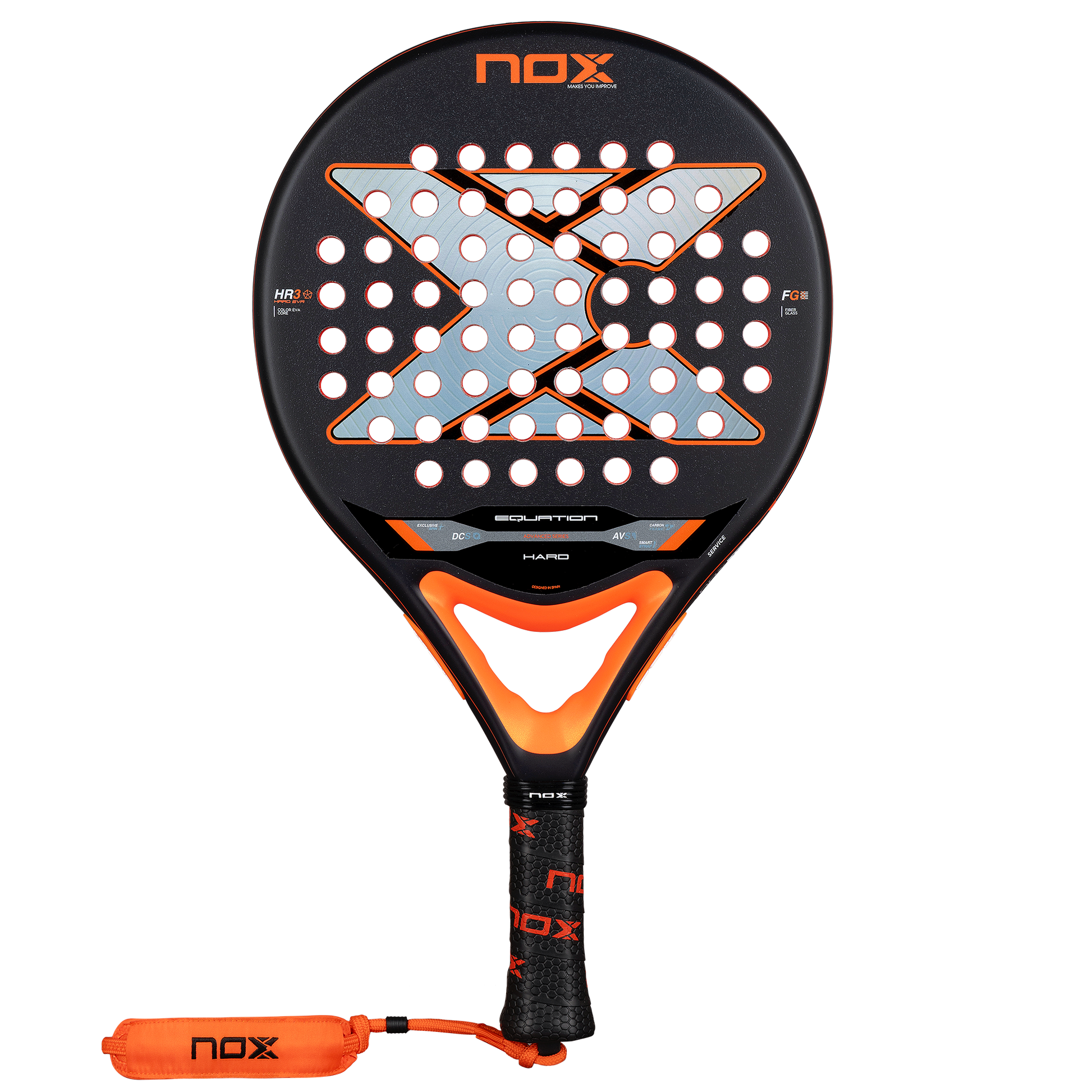 The NOX Equation Hard 2026 continues as one of the best-selling control rackets in the NOX lineup. Its balanced round shape provides a large sweet spot and pinpoint accuracy, while the HR3 Hard EVA core delivers a crisp, controlled response with extra firmness for powerful hitting. It includes an anti-vibration system to protect your arm, a replaceable Smartstrap® for safety, and the Exclusive Spin rough surface for improved ball grip and spin generation. This is the choice for control players who enjoy precision and stability in every rally.