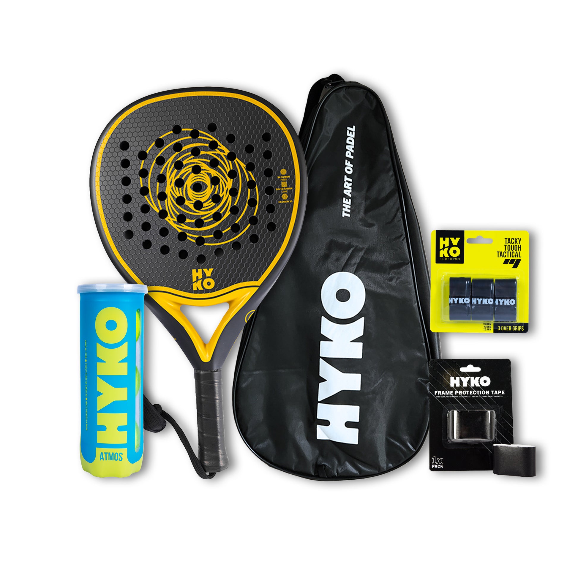The HYKO Super Touch Racket Combo is a complete ready-to-play package designed for players who prioritise comfort, control, and smooth feel. Built around the Super Touch racket, this combo includes all the essential accessories needed to step onto court with confidence. With added protection, grip upgrades, and your choice of Hyko padel balls, this bundle offers excellent value for club players and improving competitors.